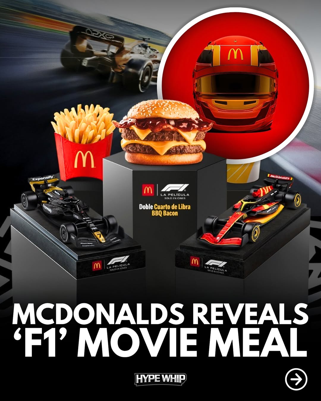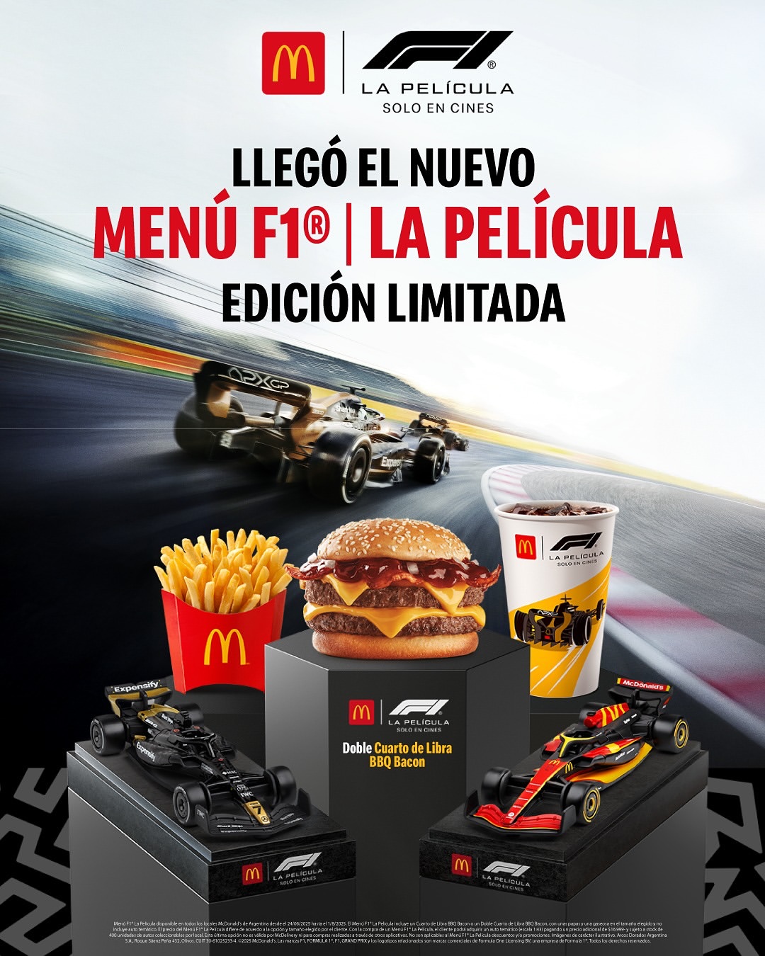 6월 25일에 국내 개봉과 동시에 박스오피스 1위를 질주하고 있는 영화 'F1 더 무비' (감독: 조셉 코신스키, 주연: 브래드 피트, 하비에르 바르뎀 등)의 맥도널드 콜라보 머천다이징 상품이 공개되었습니다.
