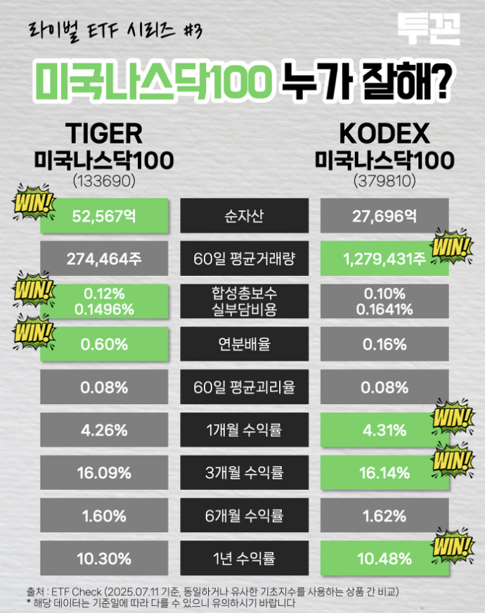 TIGER 미국나스닥100 vs KODEX 미국나스닥100 비교 정리